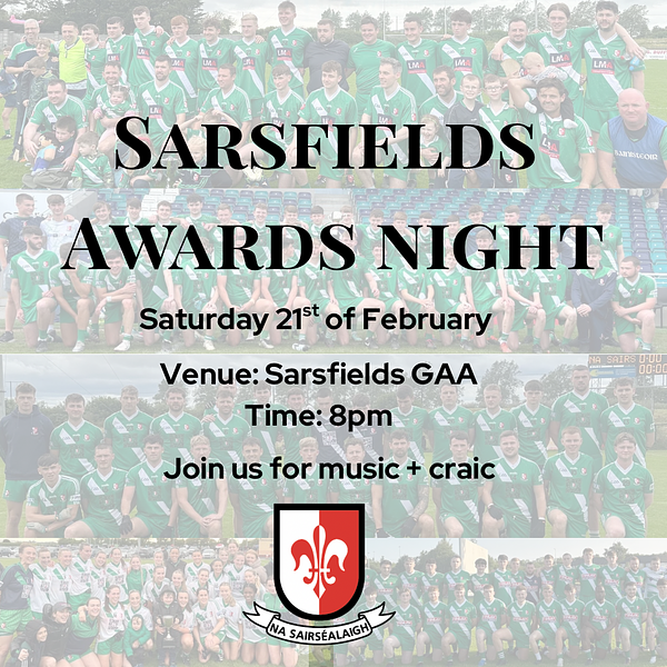 Join us for our Adults Awards Night, we will be giving out medals to our Senior Hurlers, Senior Ladies, Senior B Menโs, Junior Menโs, Minor Footballers & our Minor Girls Footballers who all won their league โจ